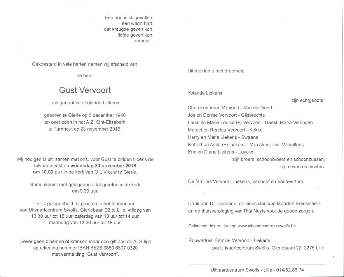 Overleden te Turnhout (2300) op woensdag 23 november 2016 op 69-jarige leeftijd