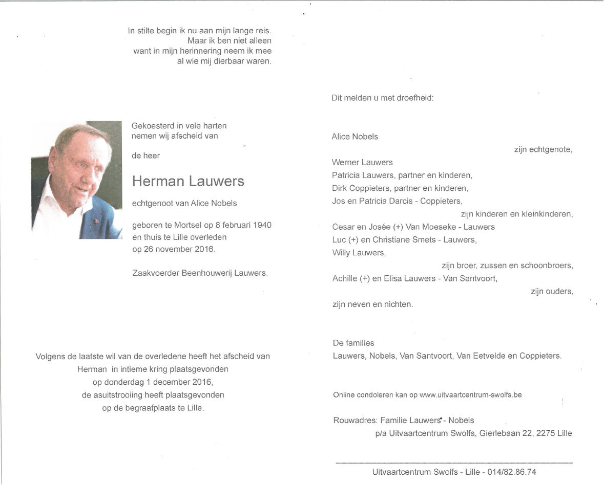 Overleden te Lille (2275) op zaterdag 26 november 2016 op 76-jarige leeftijd