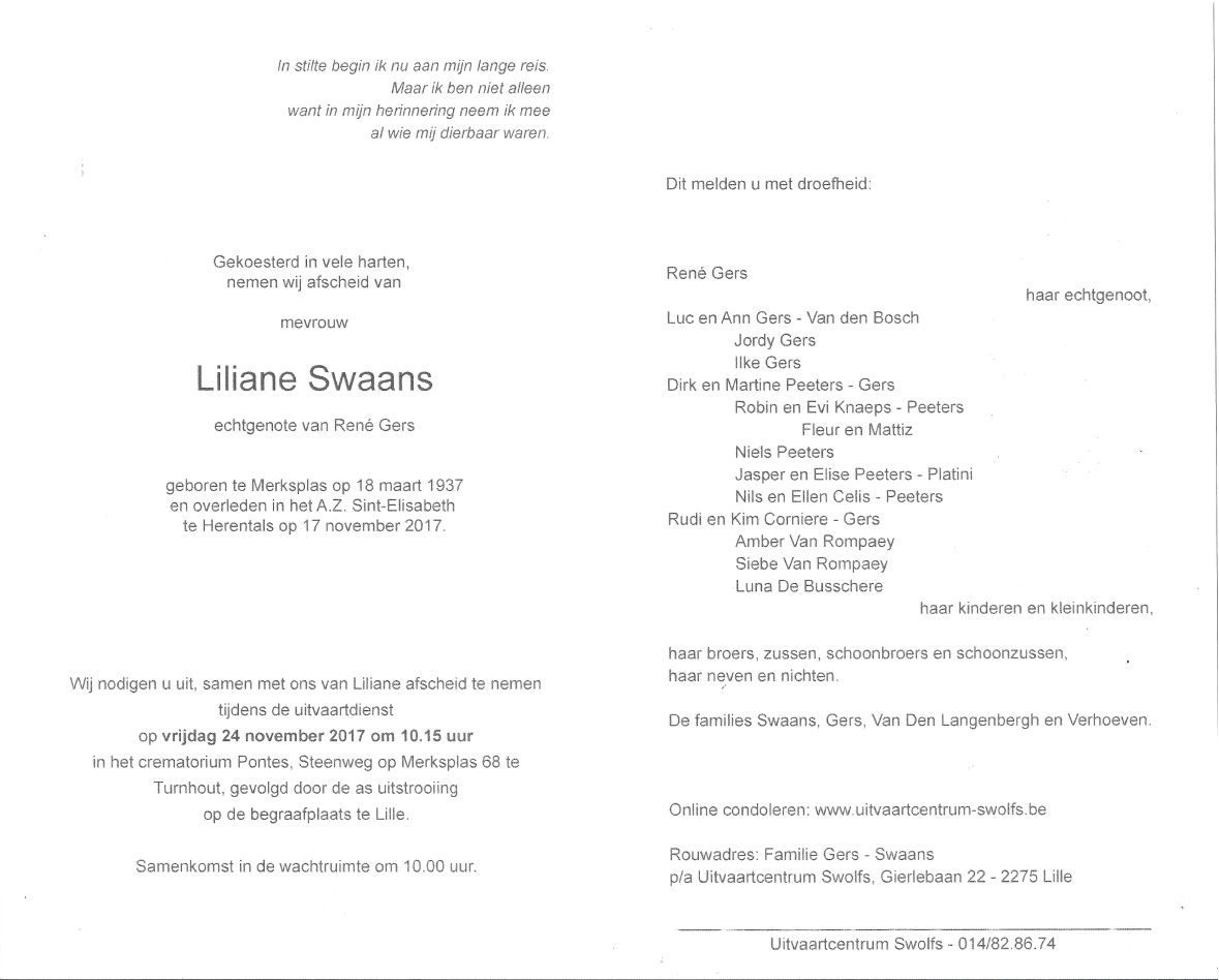 Overleden te Herentals (2200) op vrijdag 17 november 2017 op 80-jarige leeftijd