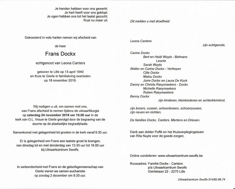 Overleden te Gierle (2275) op zondag 18 november 2018 op 78-jarige leeftijd