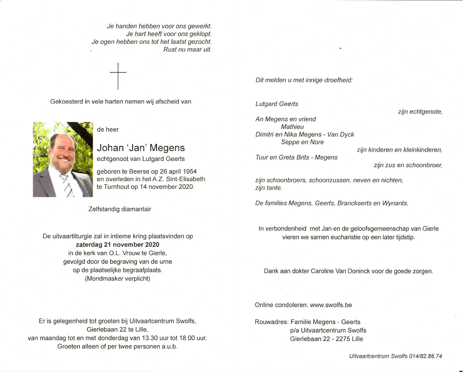 Overleden te Turnhout (2300) op zaterdag 14 november 2020 op 66-jarige leeftijd