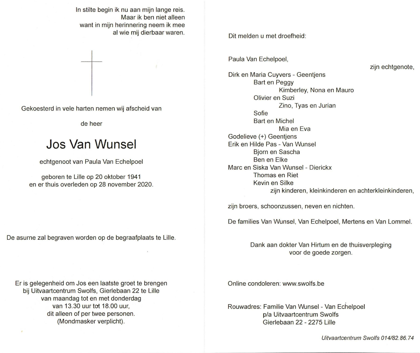 Overleden te Lille (2275) op zaterdag 28 november 2020 op 79-jarige leeftijd
