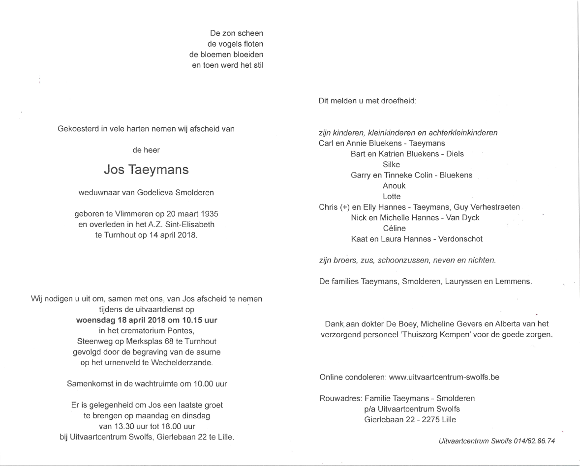 Overleden te Turnhout (2300) op zaterdag 14 april 2018