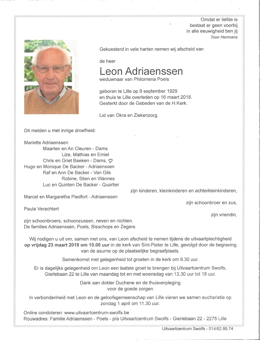 Overleden te Lille (2275) op vrijdag 16 maart 2018 op 88-jarige leeftijd