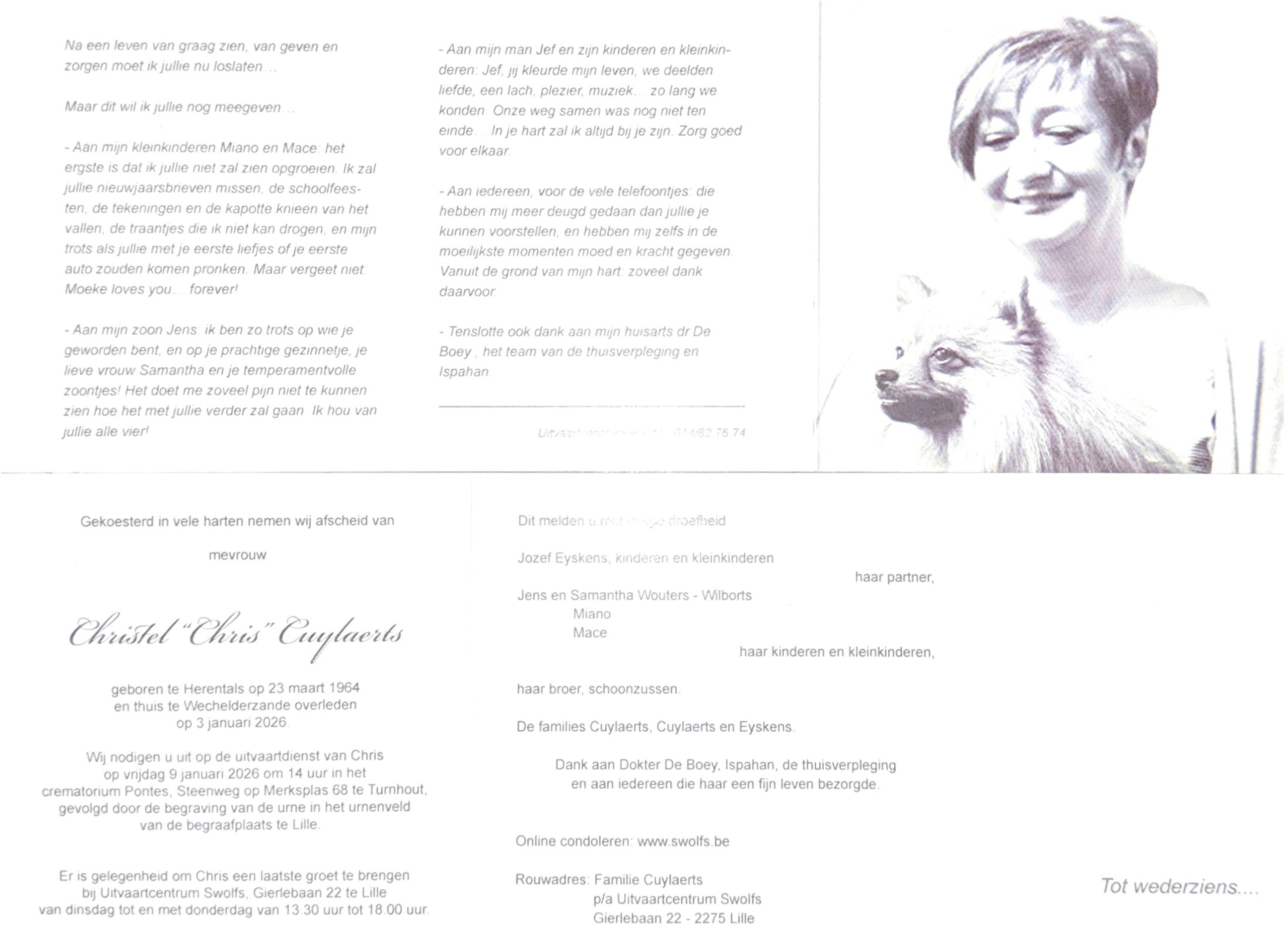 Overleden te Wechelderzande (2275) op zaterdag 3 januari 2026 op 61-jarige leeftijd