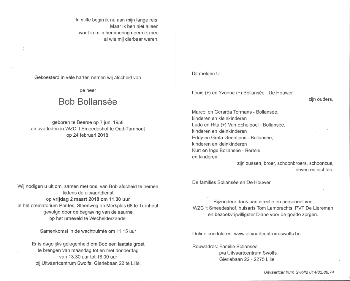 Overleden te Oud-Turnhout (2360) op zaterdag 24 februari 2018 op 59-jarige leeftijd