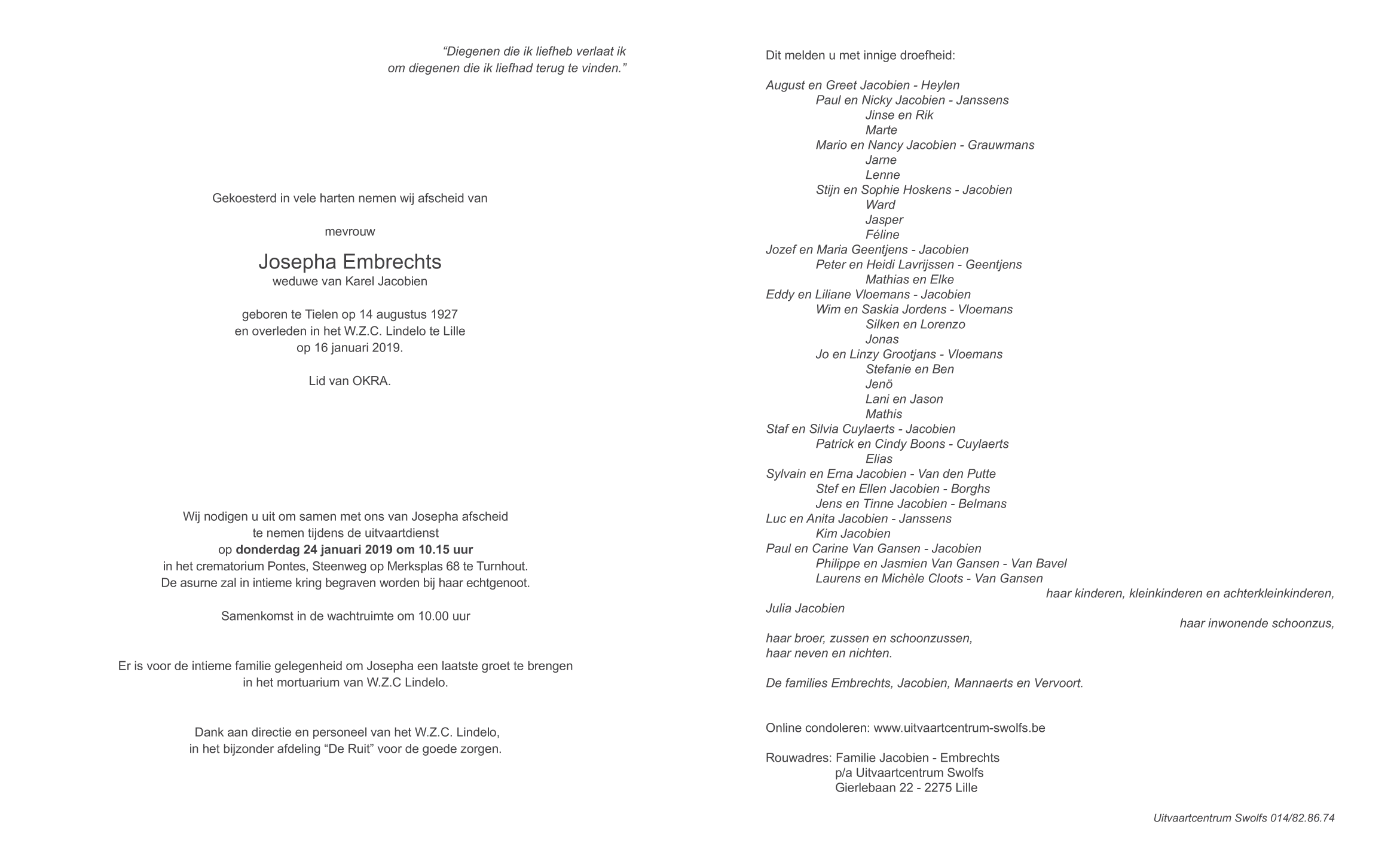 Mevrouw Embrechts Josepha
