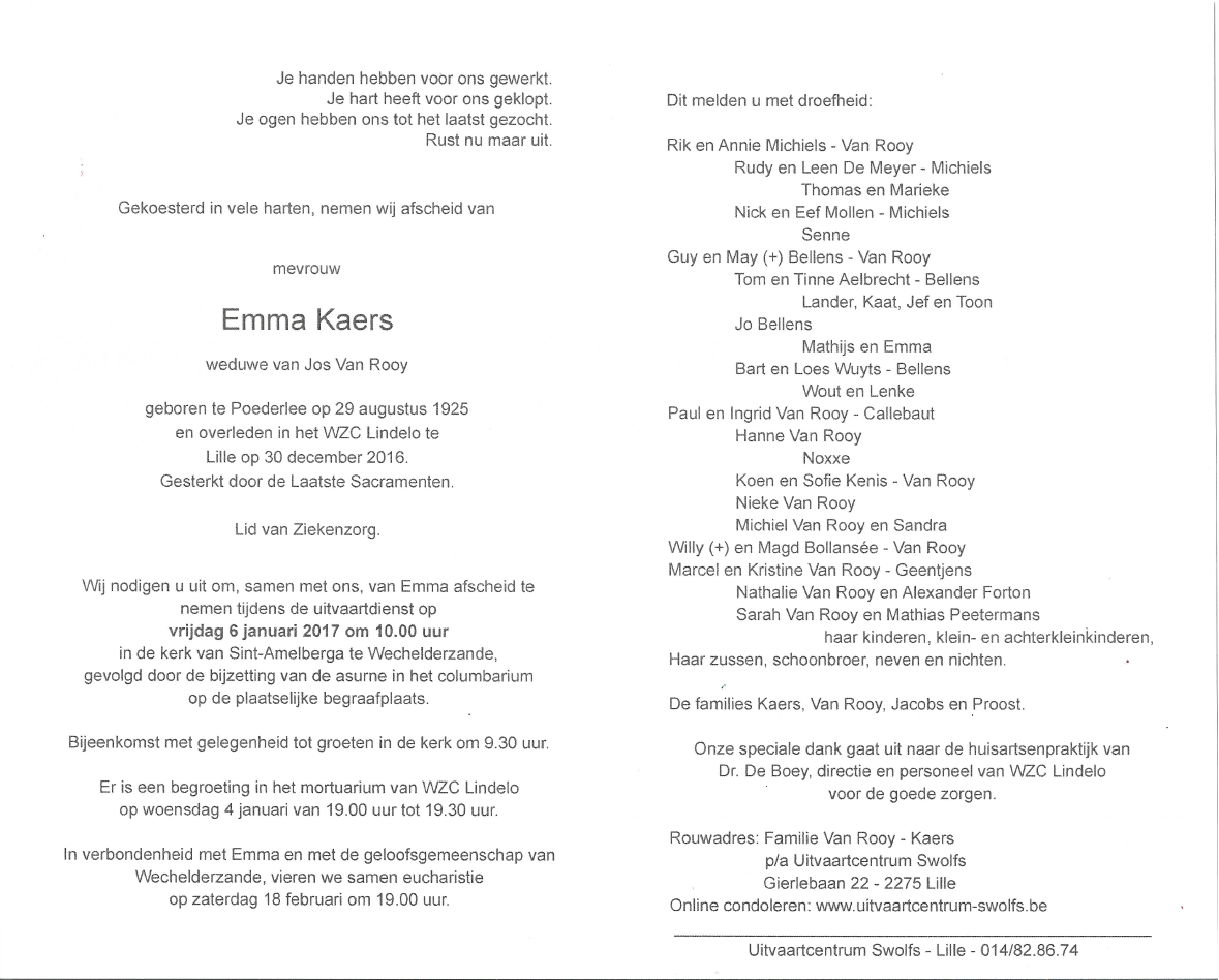 Overleden te Lille (2275) op vrijdag 30 december 2016 op 91-jarige leeftijd