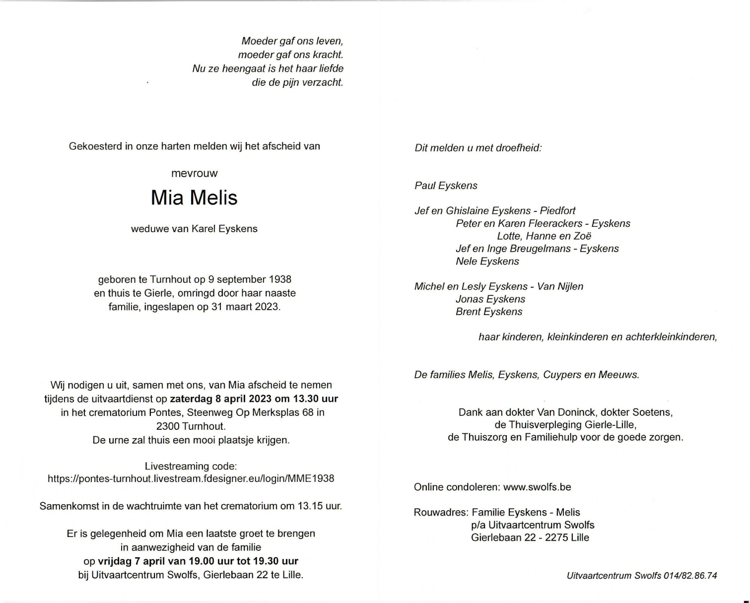 Mevrouw Mia Melis