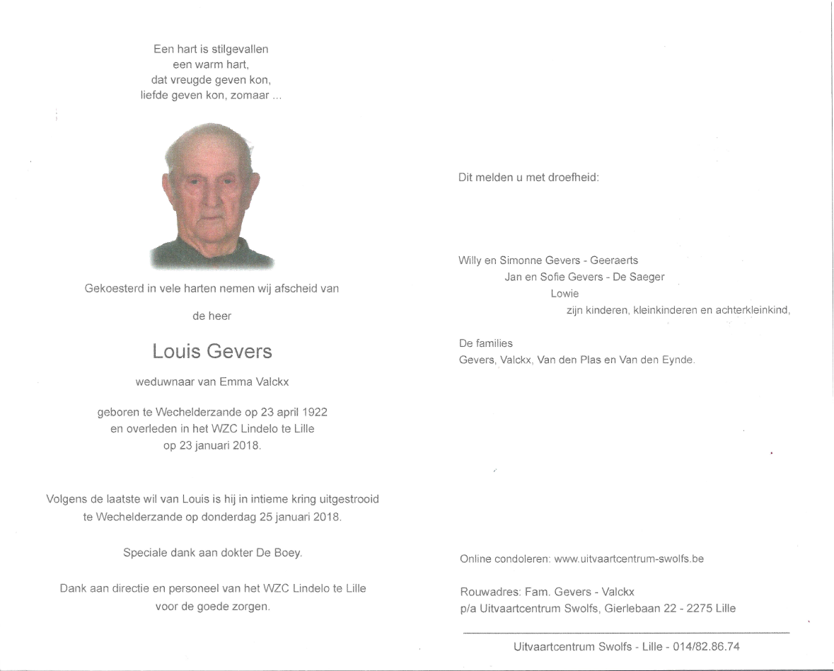 Overleden te Lille (2275) op dinsdag 23 januari 2018 op 95-jarige leeftijd
